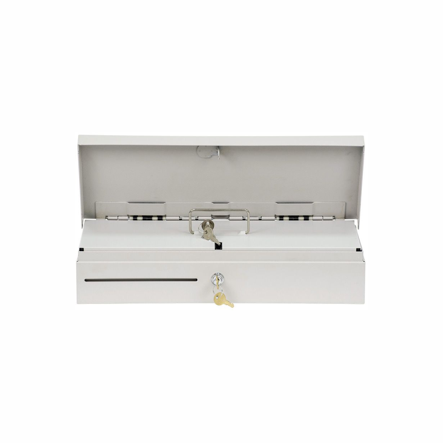Для хранения банкнот предусмотрено 6 отделений, размеры которых можно адаптировать под ширину купюр. Для хранения монет – 8 отделений. Лоток с купюрами и монетами может полностью выниматься из денежного ящика для инкассации. Наличие отделения для чеков и счетов обеспечит сохранность финансовых документов и порядок на рабочем месте кассира.