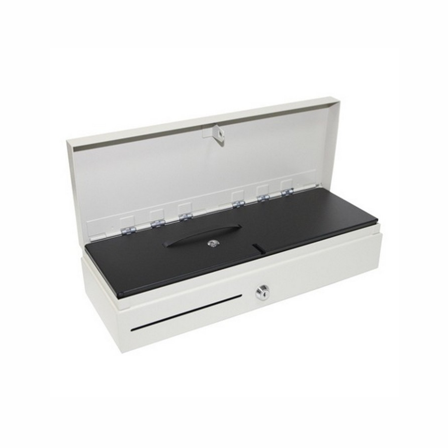 Ящик с 3-х позиционным электромеханическим замком с ключом, имеет три режима: полное закрытие, открытие кассиром, открытие электромагнитом.
